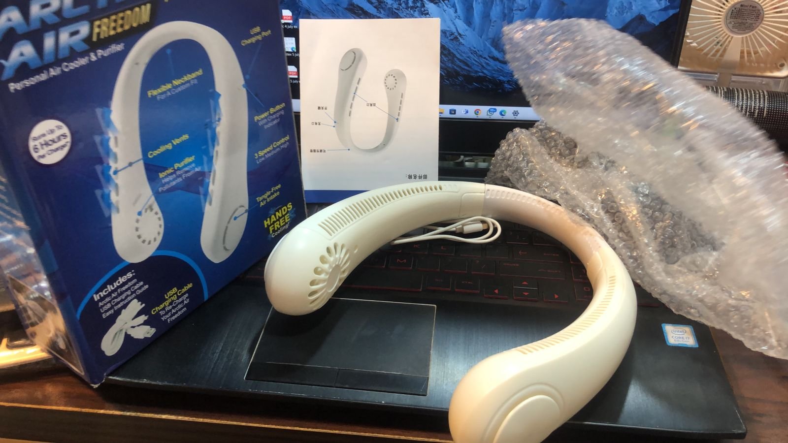 Wearable 3-Speed Neck Cooler, Small Fan for Outdoor & Indoor Use, USB-Rechargeable Fan(random color )