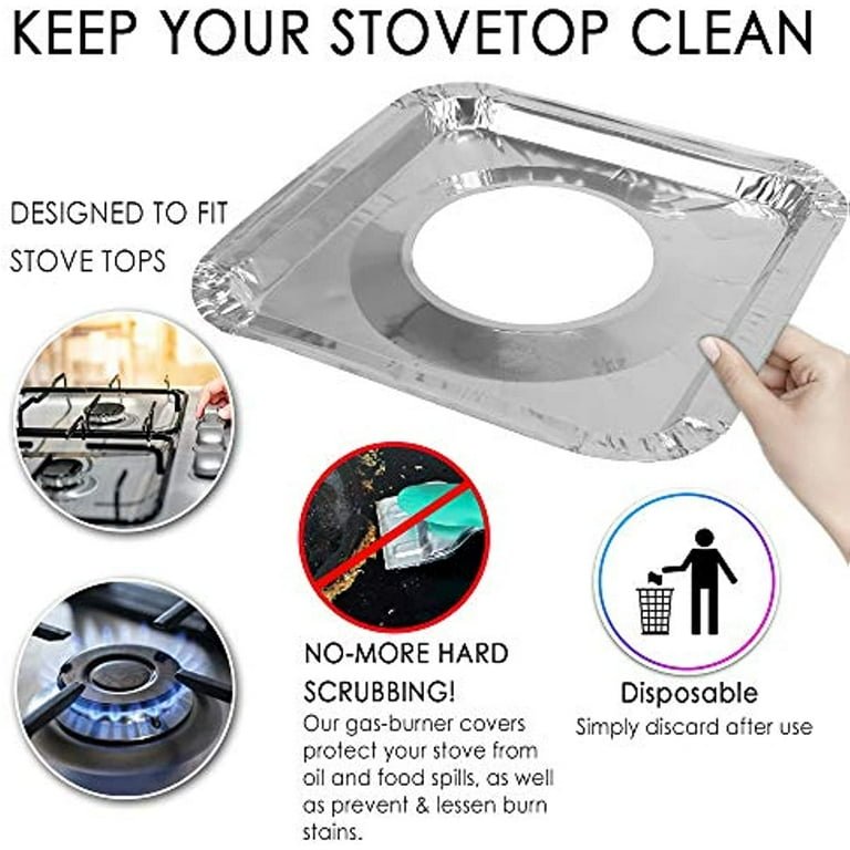 FITS ONTO MOST GAS RANGES – The Foil Bib and hole should fit over most gas burners. If the hole seems too small for larger gas ranges, simply take a pair of scissors and cut the hole bigger to fit over your gas. These gas top covers are made to withstand the extremely high temperatures of your gas range stove top.