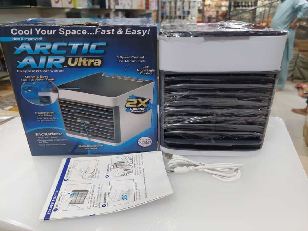- Arctic Air Ultra is an evaporative air cooler that uses the power of evaporating water to cool down the room temperature
