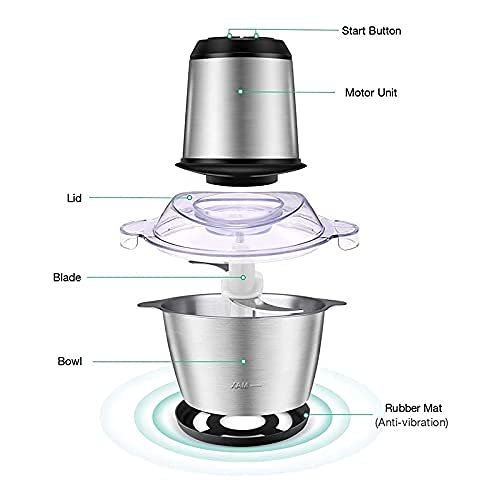 STAINLESS STEEL BLADE: Made of 304 stainless steel, the sharp 4 bi-level blades provides long-lasting and safe performance. The chopper blades can quickly chop onions, slice salad ingredients, shred cabbage and blend frozen fruit and ice.