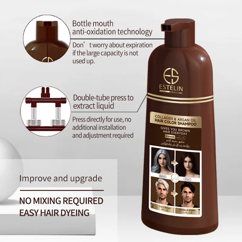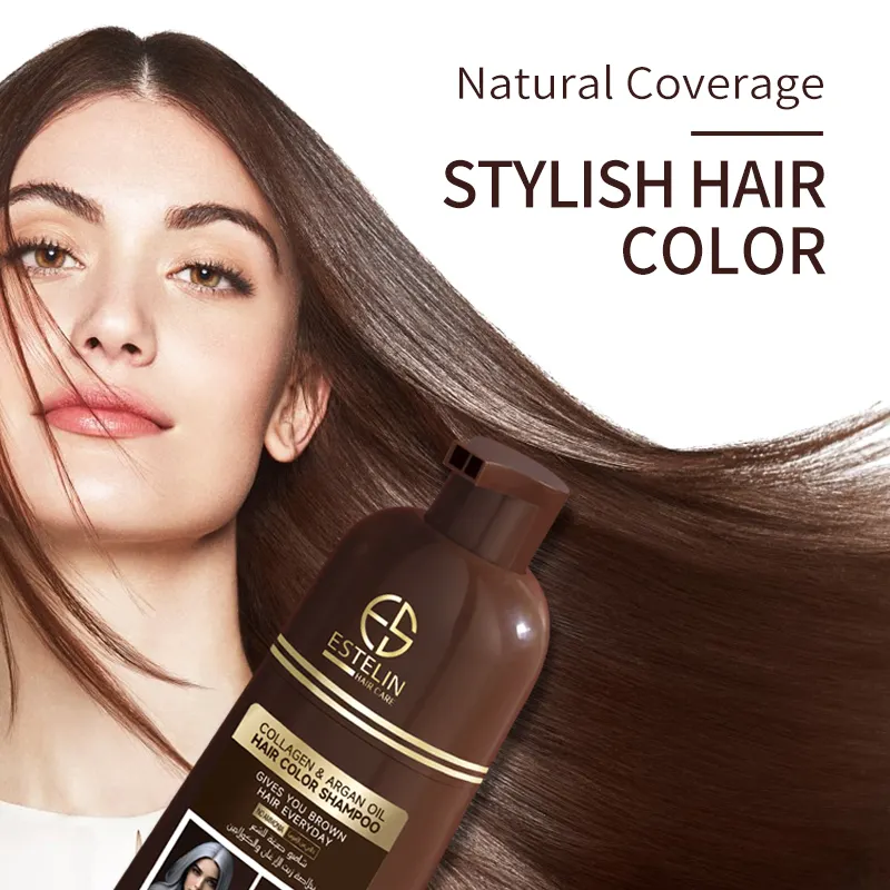ESTELIN Quick Effective Collagen Argan Oil Hair Color Shampoo Dark Brown 400ml