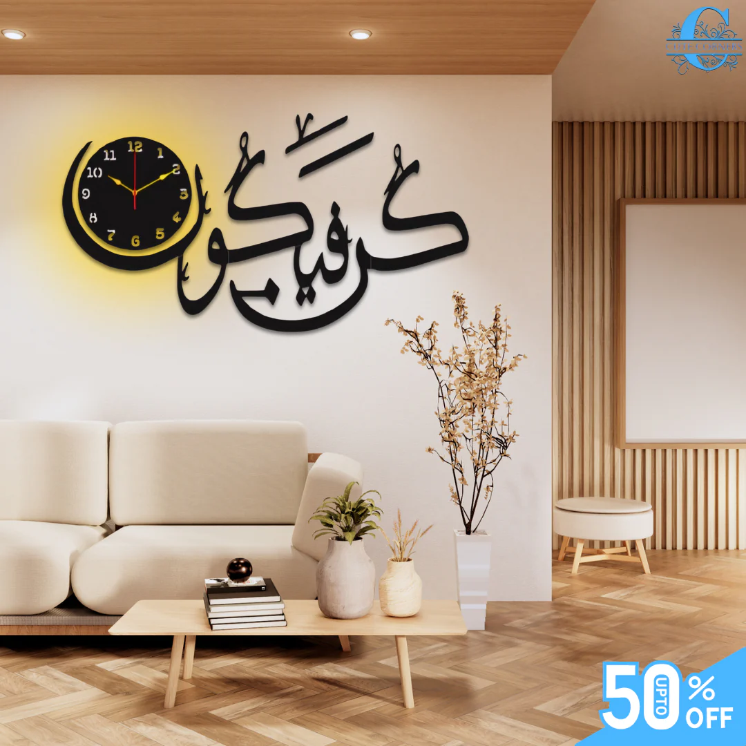 The Kun Faya Kun Islamic Wall Clock is not just a timekeeper; it’s a daily reminder of faith and spirituality. Its design encapsulates the powerful Quranic phrase “Kun Faya Kun,” which signifies the divine command of creation.