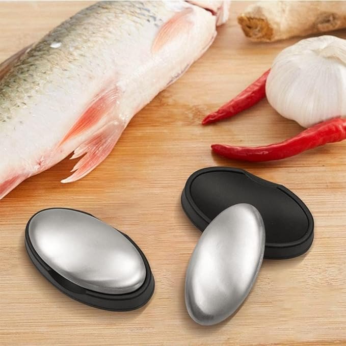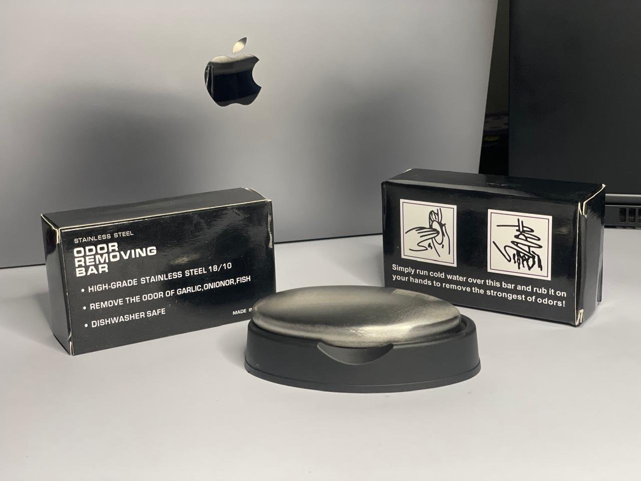 Odor removing steel soap bar with stand and box | soap for lazy people | Odor Remover Bar Deodorant Metal Soap Stainless Steel Soap Bar Eliminating Smell Like Onion, Garlic or Fish and Holder Dishes for Kitchen