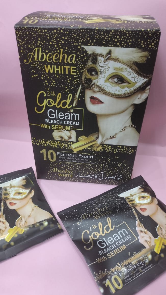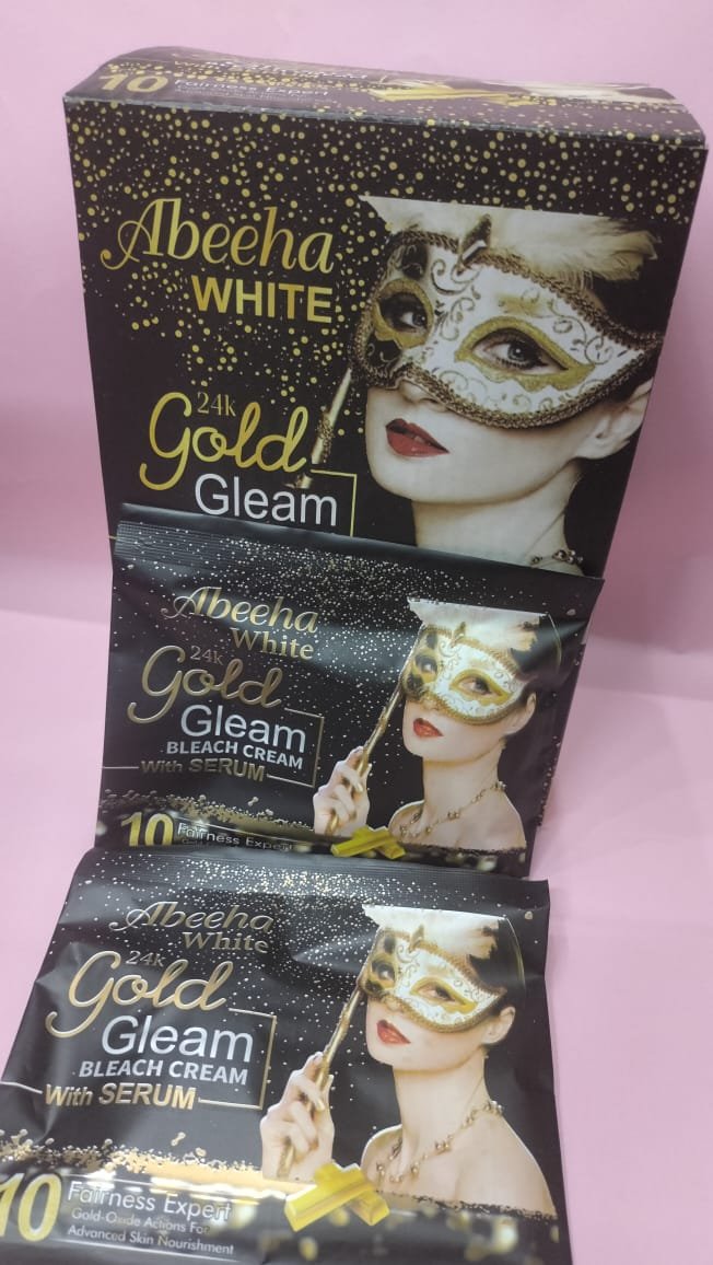 - Abeeha white 24K Gold Gleam Bleach Cream is fortified with the energy and glow of pure 24K gold not only bleaches the facial hair to match the skin tone also helps skin look fairer and youthful with a golden glow.Make the choice to lighten your facial hair with gold bleach cream, your beauty essential.