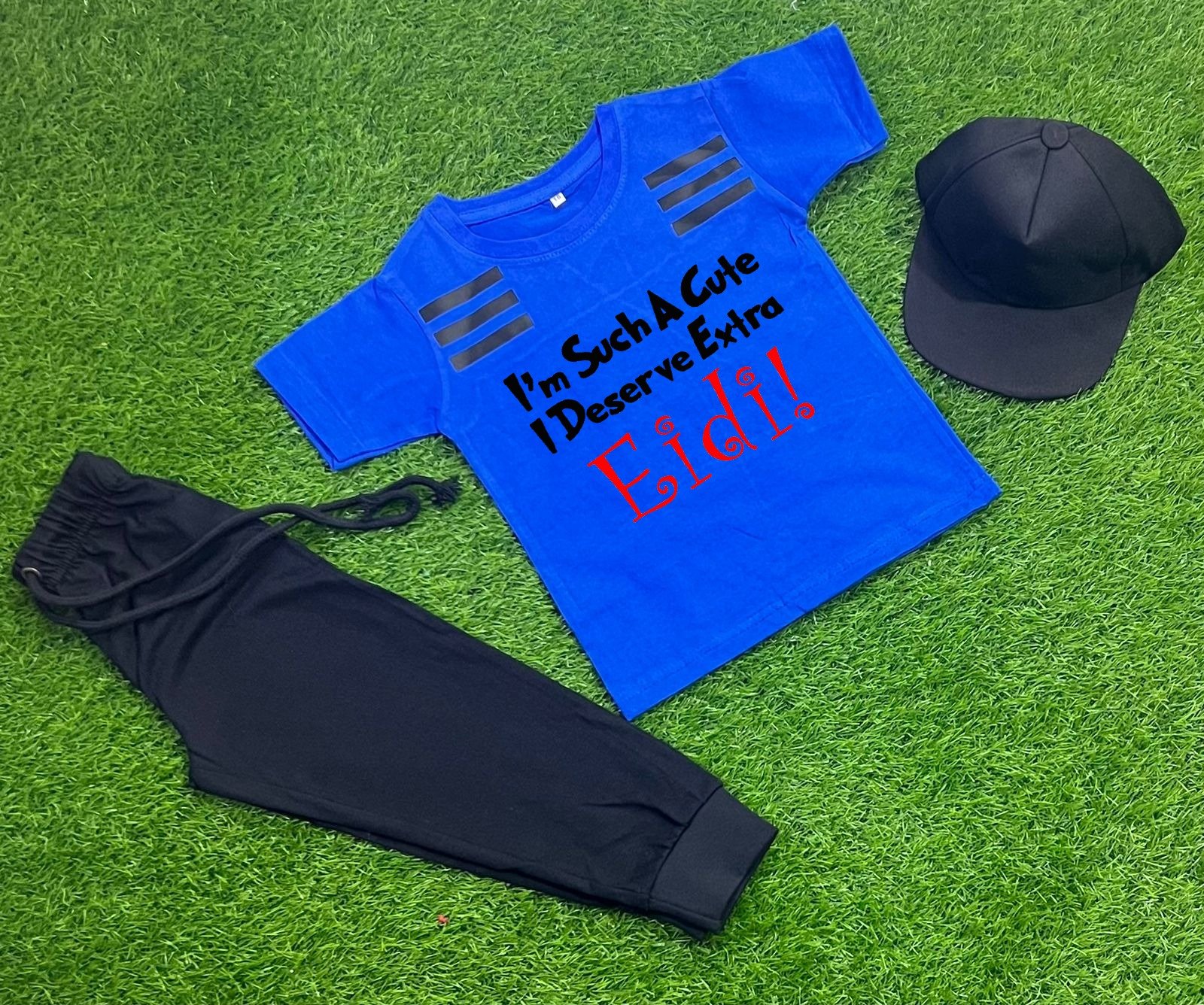 Pack Of 3 Disserve Extra Eidi Royal Blue Trakcsuite For Kid Shirt Trouser Cap