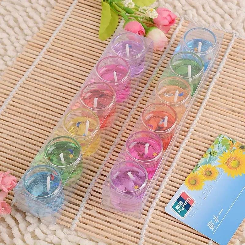 Set of 12 pcs - Smokeless Romantic Glass Candle | Mini Glass Jelly Gel Candles for Home Decor (random color)