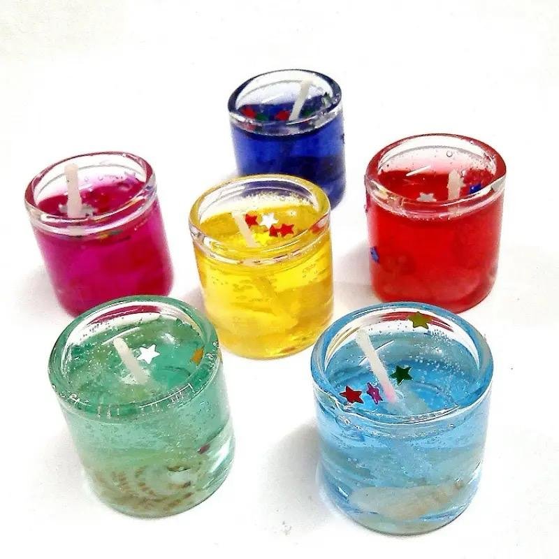 • Set of 12 pcs - Smokeless Romantic Glass Candle | Mini Glass Jelly Gel Candles for Home Decor (random color)