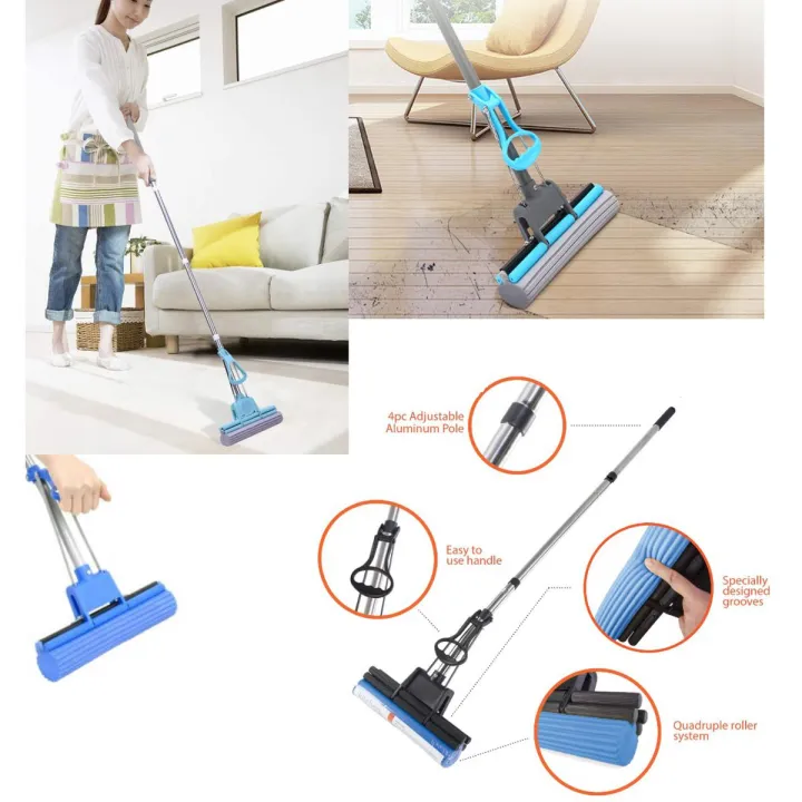 Signle Roller Pva Sponge Mop Floor Cleaning Squeeze Mop with Adjustable Telescopic Handle Squeegee Absorber Sponge Cleaner for Home Kitchen Bathroom, Stainless Steel (Random Color)