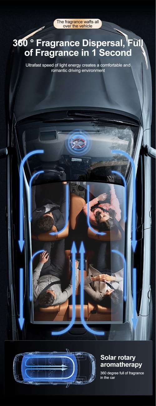 Function: The perfume ornament adopts innovative solar, which automatically rotates when exposed to light, without charging, and actively disperses the fragrance.