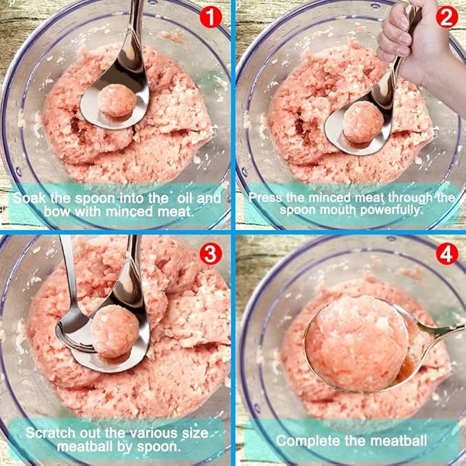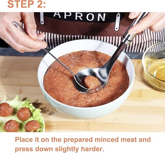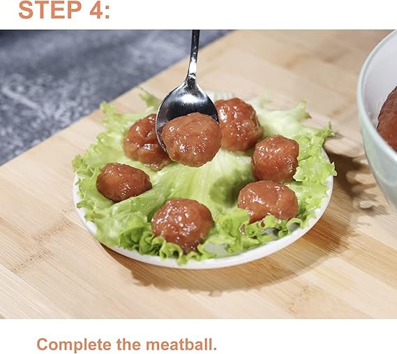 Easy to Use: If you drop the spoon through the oval leak hole into the meat and press lightly, then scratch down with a non-stick spoon, the meatball forms on the spoon, so that the meatballs do not fall apart easily.