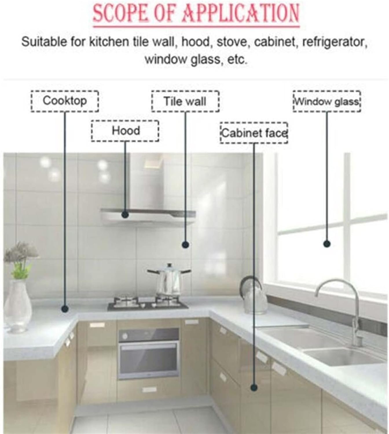 - Application: transparent film is suitable for smooth kitchen tiles, bathroom tiles or smooth clean wooden surfaces. The transparent film will not damage the surface or affect the original decorative effect