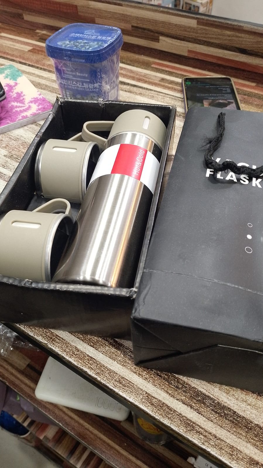 STAINLESS STEEL VACUUM FLASK SET, 500ML WITH 2CUPS (random color)
